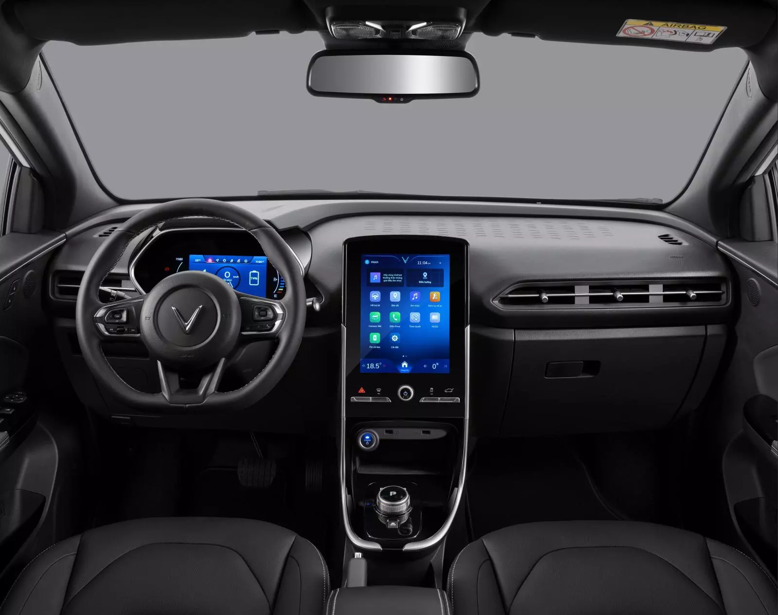 Thiết kế nội thất Nerio Green gần như kế thừa toàn bộ từ VF e34 với màn hình giải trí trung tâm đặt dọc, nối liền bảng điều khiển trung tâm, tạo thành dạng thác nước cá tính. Vô-lăng vát đáy thể thao tích hợp các phím bấm chức năng. Phía sau bố trí đồng hồ thông tin.